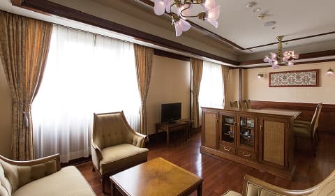 - 客室内には伝統工芸九谷焼をアートワークとして採用。余裕の広さと140cm幅〜ワイドサイズの最高級ベッドを全室導入し、クローゼット型衣類リフレッシュ機などの充実した設備で快適なくつろぎ空間をご提供。