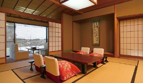 - 粟津温泉に佇む日本旅館。疲労回復、美肌効果の期待ができる温泉が愉しめます。全館純和風の部屋となっております。