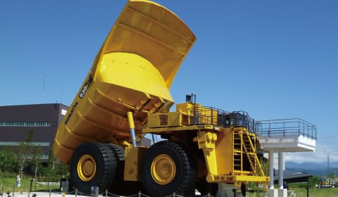 日本で唯一展示されている世界最大級のダンプトラック(最大積載量300トン、タイヤ径約4m)。さまざまな建設機械の活躍シーンの映像や展示を見ることができます。