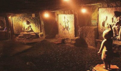 石切り場だった洞窟に創られた岩窟の中の寺「ハニべ巌窟院」。温度変化の少ない洞窟内は季節を問わず人気スポットで、その特性を活かした地元古酒の貯蔵企画も進行中です。